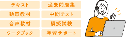 勉強のブランクのある既卒者が合格するには、膨大な試験範囲の学習を効率的に進める必要があります。SGSの教材は、合格に必要な知識をすべて網羅しているのはもちろん、オンライン学習で講師による解説をいつでも・どこでも・何度でも視聴することができますので、既卒者にとって最適な教材となっています。さらに、問題配信や質問対応、勉強相談などの学習サポートによって、独学ではない自宅学習をすることができますので、長期にわたる受験勉強を途中で諦めることなく、継続することが可能となります。